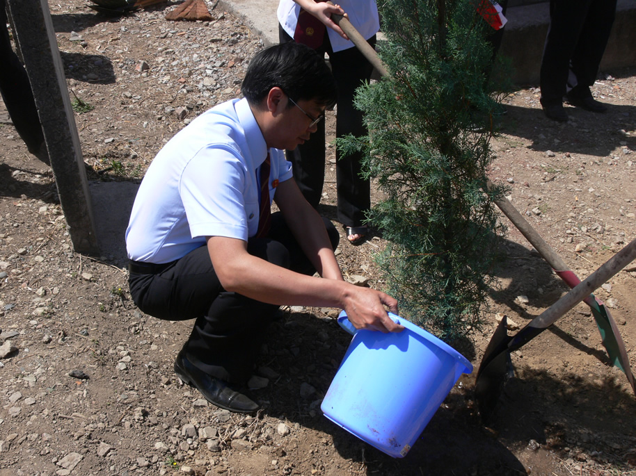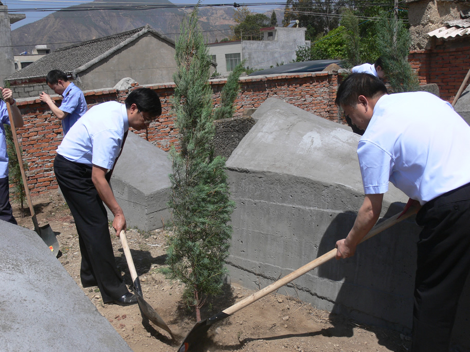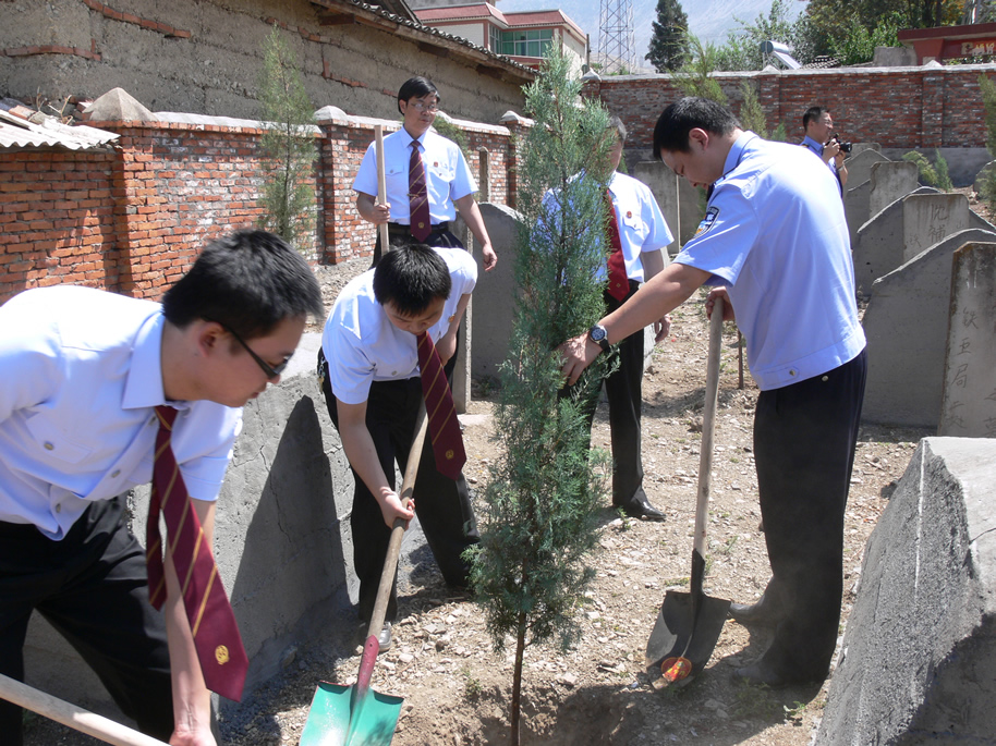 在修葺一新的烈士陵园内,参加祭扫活动的法院干警列队向烈士们敬献了鲜花,聆听了深情怀念烈士们的祭词,重温了激动人心的入党誓词。随后,进行了植树活动,在烈士墓前种下了苍松翠柏,让一株株饱含着铁路法官绵绵哀思的长青树挺立在陵园内,永远陪伴着长眠的烈士们。