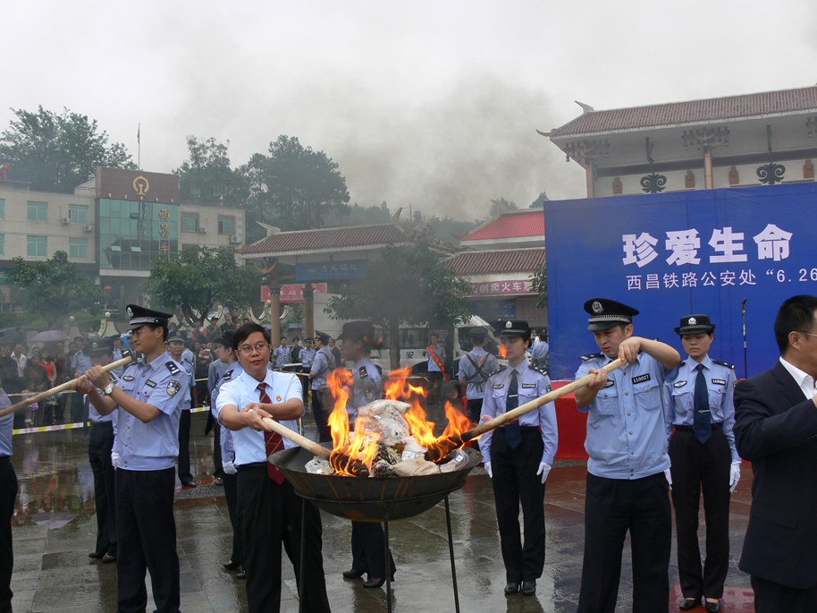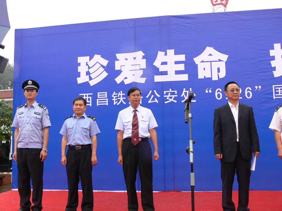 宣传活动上,凉山州禁毒委委员江云华、成都铁路公安局副局长苟仲康等领导做重要讲话,充分肯定西昌铁路公检法为深入推进禁毒人民战争的开展,严厉打击毒品犯罪活动,巩固禁毒成果所取得的重大成效,鼓励西昌铁路公检法干警要再接再厉,以更饱满的工作热情投入到禁毒事业当中去,为构建和谐成铁做出更大贡献。