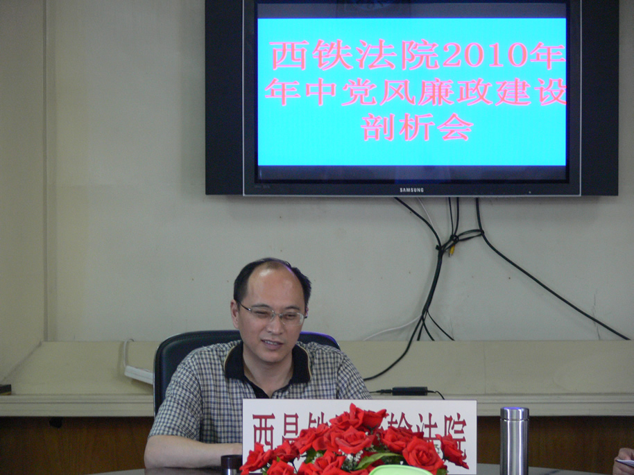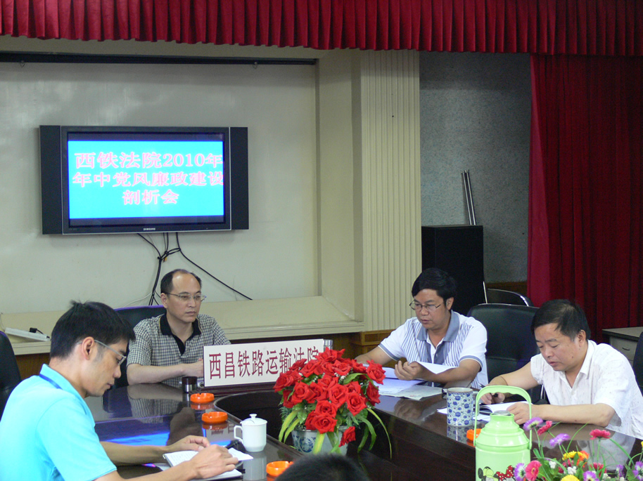 2010年7月22日,西昌铁路运输法院召开本年度年中“党风廉政建设定期剖析会”,院党组成员、中心组成员参加了会议,兼职纪检监察员、六管人员列席。成铁中院政治部主任尹朝良、协理员黄学军到会指导。会议由院党组书记、院长花桂荣主持。