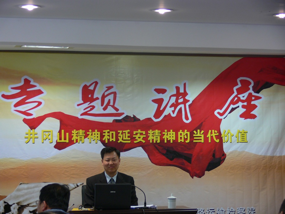 为推进“发扬传统、坚定信念、执法为民”主题教育实践活动的深入开展,进一步坚定党员领导干部的共产主义理想和中国特色社会主义信念,增强为人民意识和群众观观念,做好新形势下的人民法院各项工作,7月12日下午,西昌铁路运输法院、西昌铁路运输检察院联合举办了题为《井冈山精神和延安精神的当代价值》的专题讲座,特邀西昌学院副院长、国家二级教授景志明教授宣讲。西铁法院和西铁检察院全体干警聆听了讲座。