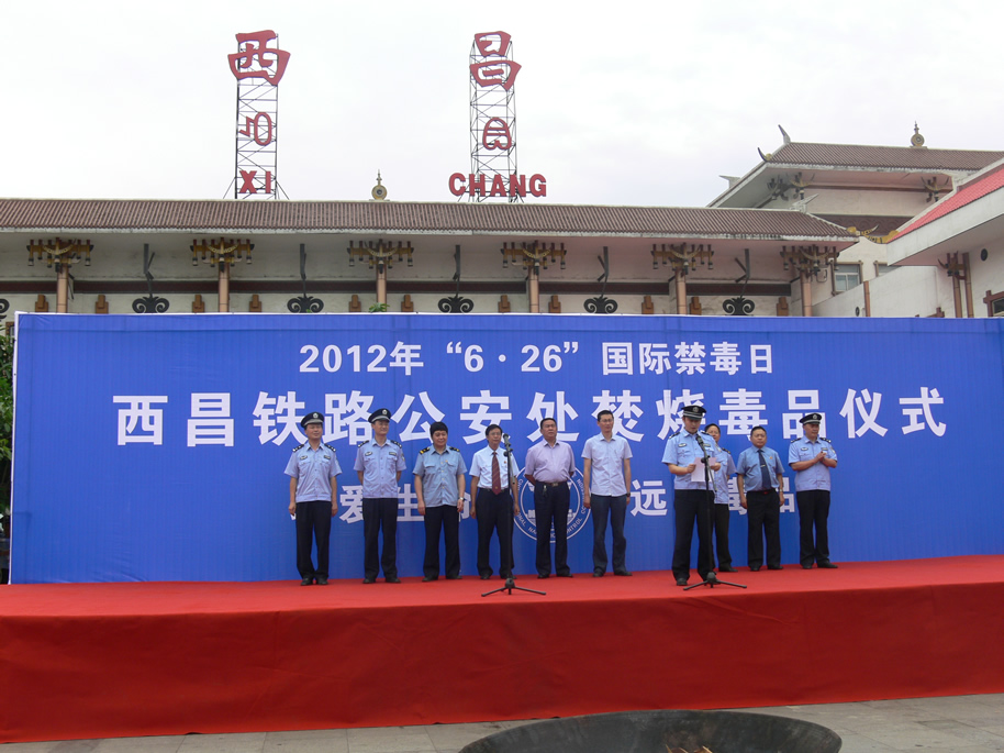 6月25日,西昌铁路公安处在西昌火车站广场举行了“6.26”国际禁毒日焚烧毒品活动。凉山州政法委、西昌铁路公检法、铁路地区各站段单位主要领导及千余名铁路职工和群众参与。西铁法院院长花桂荣代表铁路法院出席活动,并在禁毒横幅上签名。当天一共焚烧了22公斤各类毒品。活动现场还发放了两千余份禁毒宣传资料。