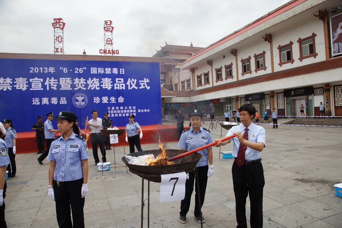 【图文】西铁法院到西昌火车站进行“6.26禁毒”焚烧毒品仪式