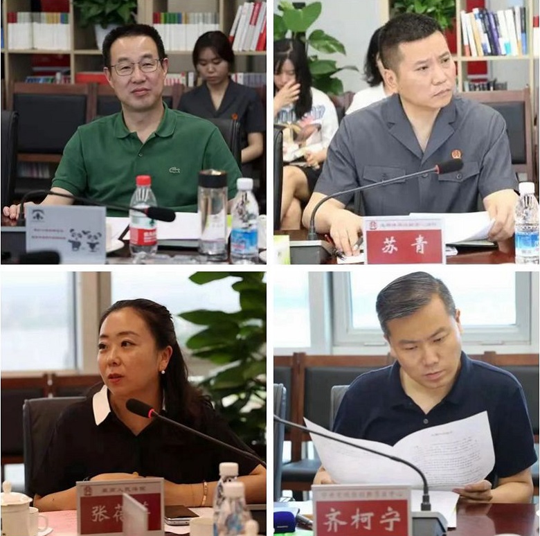 座谈会上,杨诚院长向调研组一行介绍了天府中央法务区专业法庭的概况,着重介绍了四川大熊猫国家公园生态法庭的基本情况。苏青院长汇报了大熊猫国家公园生态法庭的重点案件及宣传亮点素材。张蓓蓓处长、齐柯宁编导等就两级法院新闻宣传工作作深入指导交流。