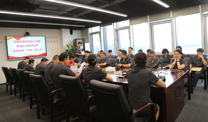 为有效推进政法队伍教育整顿扎实开展,检验干警学习情况,巩固干警学习成效,8月26日下午,成铁二院组织全院干警参加政法队伍教育整顿应知应会知识测试。