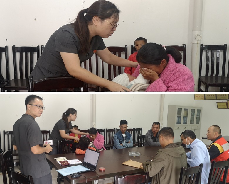考虑到原告目前尚处于哺乳期,在丈夫离世后,她一人带着孩子,加之经济困难,存在语言障碍,出行极其不便。为减轻群众讼累,方便群众参与调解,承办法官当即决定:立即动身,上门调解!