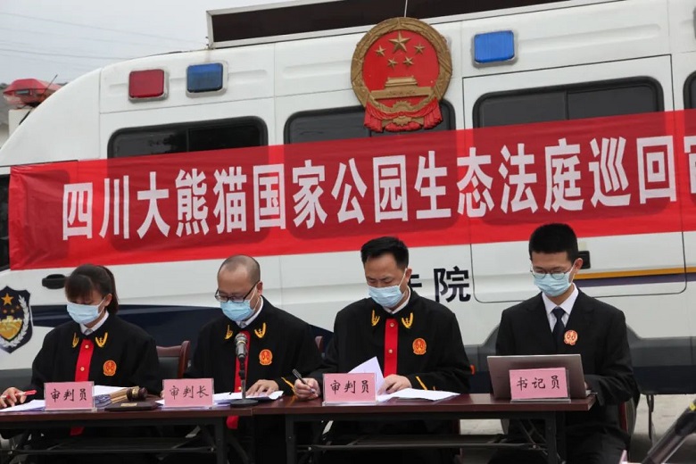 普法宣讲 :护一片青山绿水,人人有责,在四川大熊猫国家公园生态法庭成立之初,做好环境普法宣传也是每一位法院干警的任务。庭审结束后,办案法官结合本次审判实例,会同北川法院、大熊猫国家公园北川管理总站对现场群众进行了涉林法规政策宣讲和自然教育活动,通过“巡回审判+现场普法+自然教育”的形式,“挽救一个人、恢复一片林,教育一群人”,用身边人、身边事让群众对破坏森林资源的后果有了直观深刻的认识,增强了群众的法治意识,取得了良好的法律效果和社会效果。