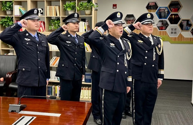 上午10时,活动在庄严的国歌声中拉开帷幕。司法警察大队全体警员身着常服,列队整齐,警容严谨,在大队长廖勇的带领下,高举右拳,面向警旗庄严宣誓。“我是中国人民警察,我宣誓......”誓言铮铮,铿锵有力,光荣使命召唤铁的担当,壮阔征程铸就铁的臂膀。