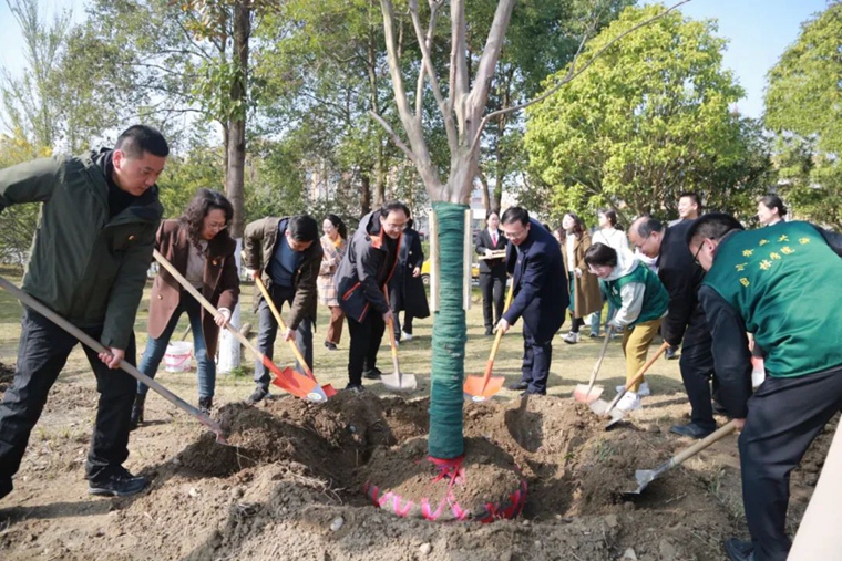 阳光普照,春风拂面。植树现场,一个个忙碌的身影穿梭不绝,大家热情洋溢、干劲十足、分工协作、挥锹铲土、扶苗填坑、提水浇灌、配合默契,认真细致地完成每道工序,成功栽种海棠、紫薇等树苗。新种下的树苗迎风而立,辛勤劳作的队员倚树而立,在绿意盎然中一幅人与自然和谐相处的和美画卷映入眼帘。