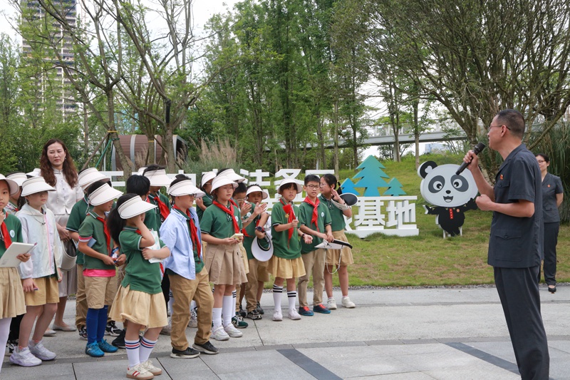 基地现场,法院干警带领学生们认真参观“天府中央法务区生态文明法治教育实践基地”,在生态文明思想长廊、生物多样性保护区、应对气候变化保护区、绿色低碳生活体验区、法治小屋中近距离感受环境司法守护绿水青山的生动实践。