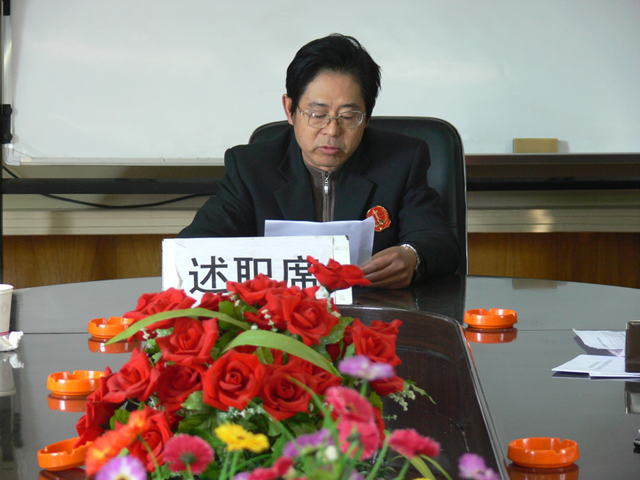 西铁法院3名党组成员和7名部门正职干部认真总结了2005至2008年四年期间的工作,并按照德、能、勤、绩、廉五个方面的要求进行了认真述职。中院考核组还组织全院干警对党组成员、部门正职进行了民主测评。