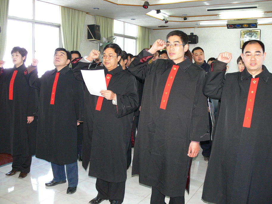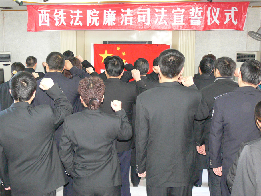 2月1日下午3时整,西铁法院全体干警身着制服,佩带徽章,面对鲜艳的国旗,举行了隆重的廉洁司法宣誓活动。