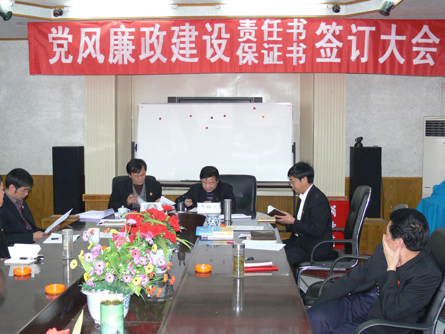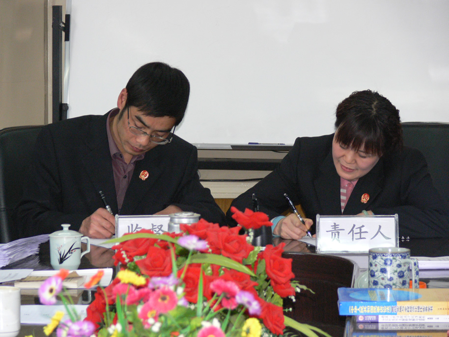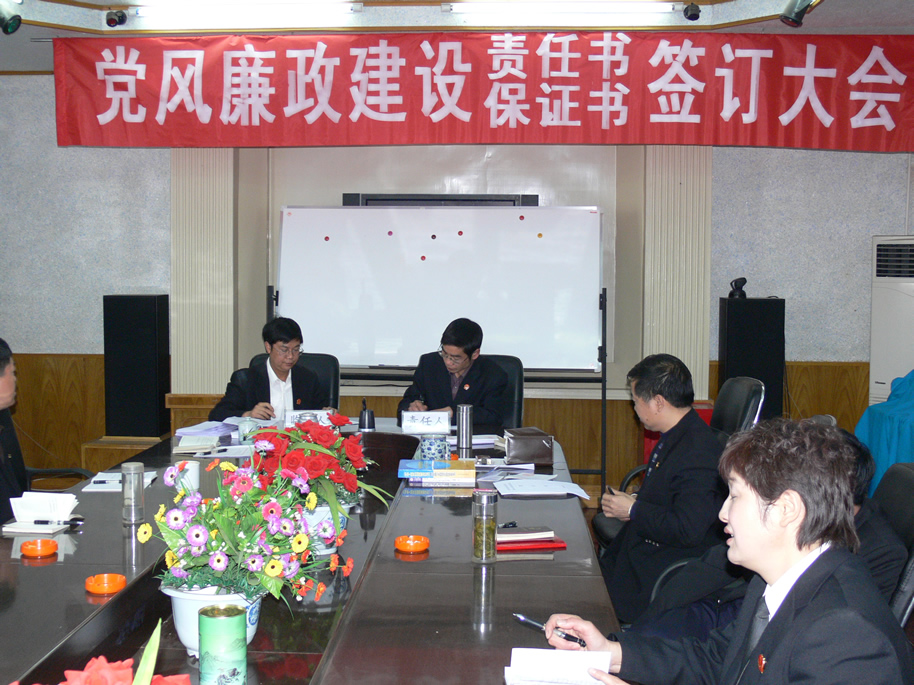会上,院党组书记、院长花桂荣与班子成员签订了党风廉政建设责任状,班子成员与各部门主要负责人、各部门主要负责人与部门干警签订了党风廉政建设责任状,根据不同的岗位特点将责任内容细化到每个部门和每一名干警。
