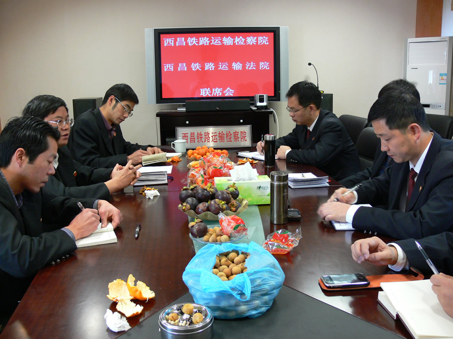 为进一步加强民事执行案件的法律监督,促进司法公正,2月18日,西铁法院与检察院共同召开了联席会。会议重点讨论了两院即将下发的《关于加强民事执行案件检察监督的实施意见》文件。院长花桂荣、副院长张剑鸣和检察院检察长韩志成、副检察长唐军等六人参加了会议。