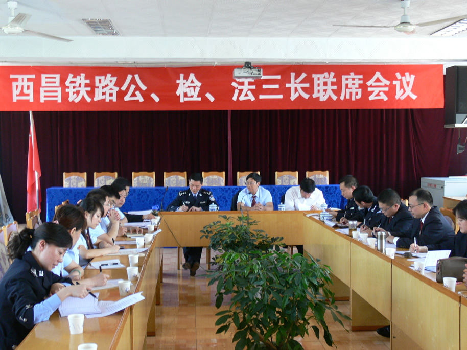 4月16日,西昌铁路运输法院、西昌铁路运输检察院、西昌铁路公安处召开了2009年第一次“西昌铁路公、检、法三长联席会议”。西昌铁路公安处熊树华处长、胡然副处长通报了2008年至2009年西昌铁路公安处查缉毒品案件的情况,并提出在办理毒品案件过程中存在的法律难点。西昌铁路运输检察院韩志成检察长、高晓副检察长对公安处在初始证据的收集方面提出了多项建议。西昌铁路运输法院刘成德副院长通报了近期死刑案件改判、发回重审的情况。审判委员会王为建专职委员通报了近期西昌铁路运输法院审理的两起毒品案件,并对《全国部分法院审理毒品犯罪案件工作座谈会纪要》进行了解读。西昌铁路运输法院花桂荣院长在会议总结发言中指出:“西昌铁路公、检、法三家在会上对毒品案件进行了深入全面的研讨,统一了思想,对重要问题达成了共识,为打击毒品案件工作的顺利开展打开了新的思路、提出了新的办法。西昌铁路公、检、法三家应该更好地共同履行职责,不断加强联系、协调、配合,严厉打击毒品犯罪,认真贯彻实践科学发展观,为促进成昆铁路的和谐发展、稳定发展作出应有贡献。”