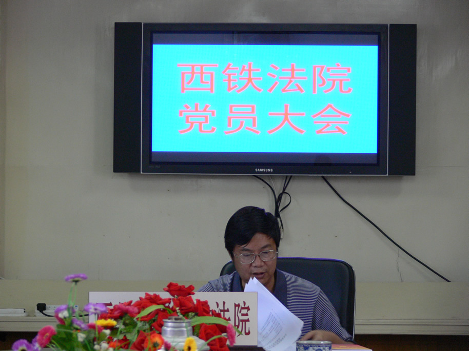 花桂荣院长首先代表上届党总支部委员会作总支工作报告,全体党员对工作报告进行了充分的讨论后,经表决一致通过,同时全体党员还讨论通过了本次改选的选举办法。本次选举由上届总支委员会和院党组共同蕴酿提出候选人名单,采用直接选举和差额选举的办法进行选举。应到会党员共31人,实际到会28人,占党员总数的91%,均为正式党员。在监票人的监督下,共发出选票28张,收回28张,其中有效票28张,由大会指定的计票人进行了计票,于泳、王康英、刘盼、刘成德、唐恩情分别以27票、24票、24票、27票、25票通过了民主选举,成为西铁法院新一届党总支部委员会委员。