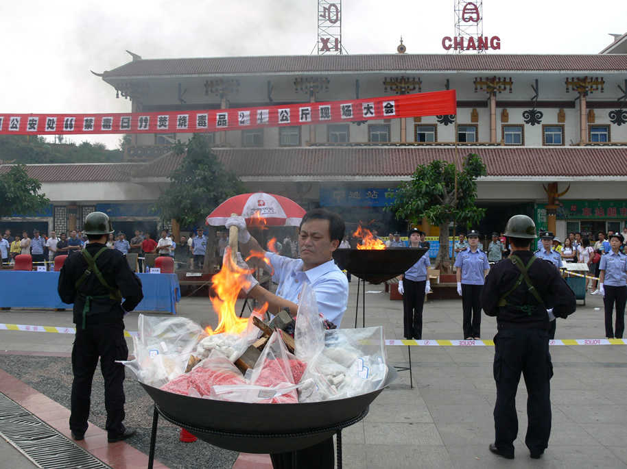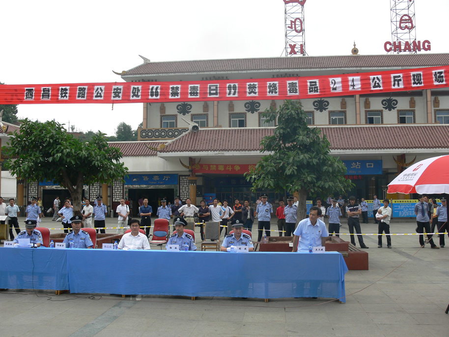 6月25日下午,西昌公安处在西昌火车站公开销毁了一批缴获的毒品。