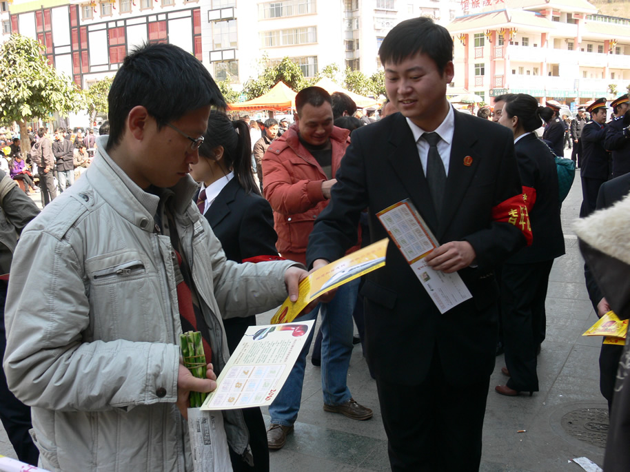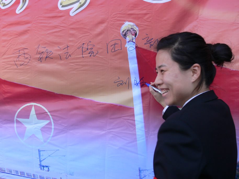 1月30日,2010年春运第一天,西昌铁路运输法院青年干警身着制服,佩戴青年志愿者袖标,在西昌火车站广场参加了“构建和谐成铁,服务平安春运”活动启动仪式。