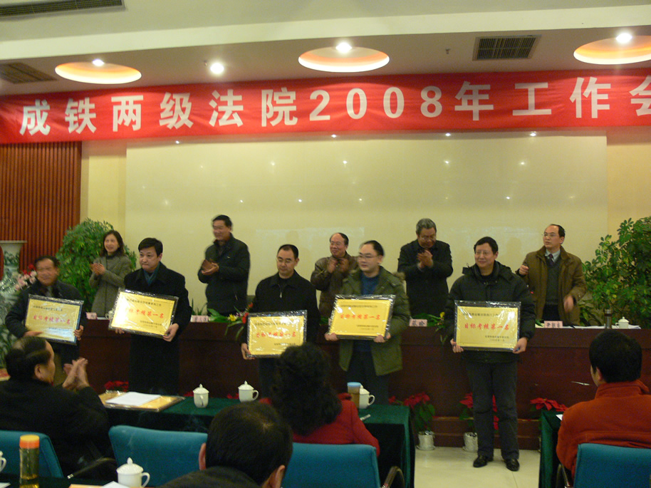 在表彰大会上,我院审监庭获“2007年工作目标考核第一名”成绩。