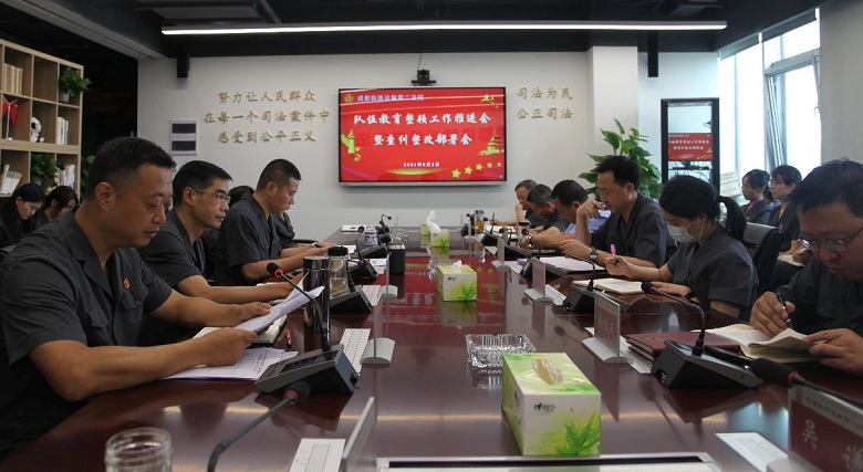 9月8日下午,成铁二院召开队伍教育整顿工作推进会暨查纠整改环节部署会,总结学习教育环节工作,安排部署查纠整改环节任务。院党组书记、院长苏青出席会议并讲话,院党组成员、政治部(督察室)主任于泳主持会议,全院干警(含聘用人员)参会。