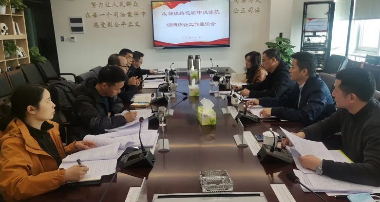 3月1日,成铁中院党组成员、副院长杨清明,审委会专职委员徐翔一行到成铁二院督导调研环资审判工作并召开座谈会。会议由成铁二院党组成员、副院长周冀主持,成铁二院党组成员、副院长张剑鸣及各审判团队负责人参加座谈会。会上,成铁中院刑庭副庭长徐晓双围绕全面推动环资案件集中管辖改革落地见效,切实提升大熊猫国家公园司法保护水平的总体目标,对近期成铁两级法院环资审判改革的重点工作进行梳理分析。