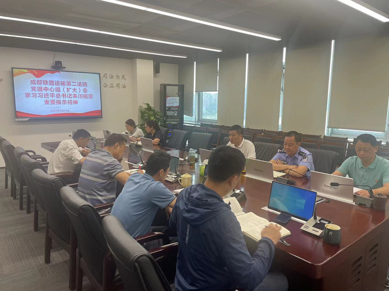 6月13日,成都铁路运输第二法院召开2022年第七次党组中心组(扩大)会议专题传达学习习近平总书记来川视察重要指示精神。党组书记、院长苏青主持会议并领学讲话。