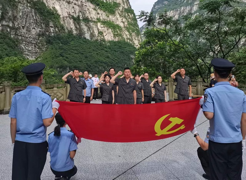“我志愿加入中国共产党,拥护党的纲领,遵守党的章程,履行党员义务,执行党的决定,……随时准备为党和人民牺牲一切,永不叛党!”在党组书记、院长苏青的带领下,参加当日活动的全体党员干警举起右拳,面对党旗,重温入党誓词,共同回溯精神的根脉,感受涌动的初心,激发前行的动力。句句铿锵有力,字字掷地有声,体现了全体干警对党的无限忠诚,对共产主义的坚定信仰。