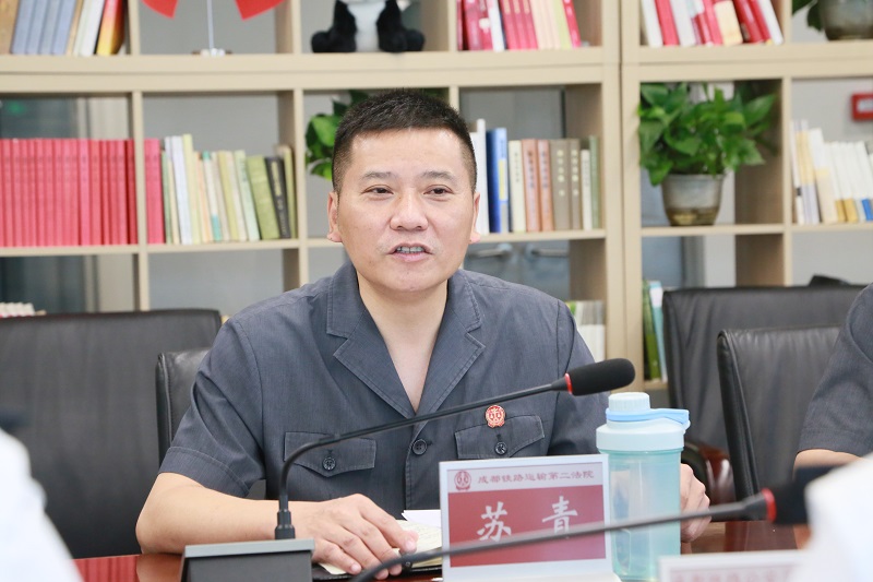 会上,苏青院长对成都铁路公安局西昌公安处的来访参观表示欢迎,简要介绍了成铁二院的审判工作并回答了相关问题。