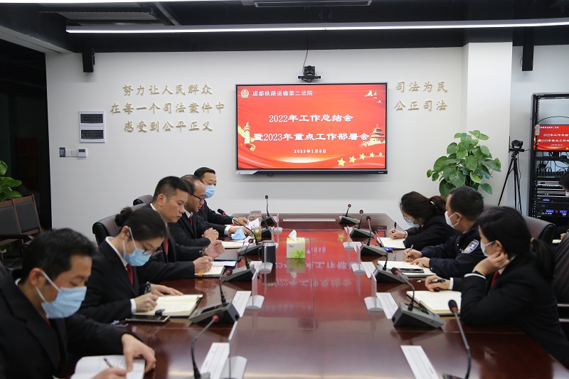 1月6日,成都铁路运输第二法院组织召开2023年党建工作部署暨2022年党支部书记党建述职评议会议,会议深入学习贯彻党的二十大精神,传达了成铁中院述党建述意识形态工作会议精神。院领导班子成员及全院党员干警参加会议。