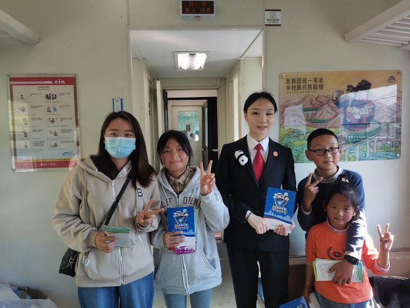 “法官姐姐,我可以加入你们一起普法吗”“我会彝语,我可以给你们当翻译”……普法课堂结束后,孩子们争相申请加入普法队伍中,表示想将学到的法律知识传递给列车上的每个人。他们中,有幼儿园小朋友,有小学生,有高中生和大学生。