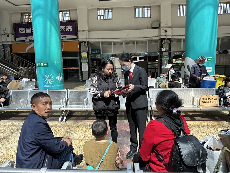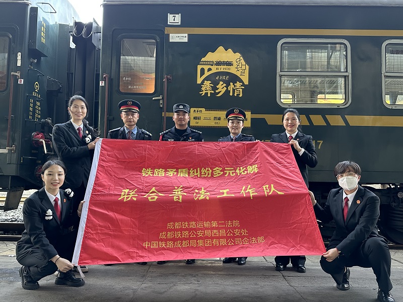 经过简短的“岗前”培训,临时组建的一支“成铁二院普法志愿者小分队”便拿上普法手册“上岗”了。面对慢火车上多数乘客为彝族群众,小志愿者们与普法队员们采用“彝汉双语”,为老乡们讲述了党的民族理论政策,宣讲了《民法典》《凉山州移风易俗条例》等法律法规,用群众最熟悉的语言、最能接受的表达,引导群众知法守法,用法律保障民族团结及合法权益,主动移风易俗,共创美好家园。