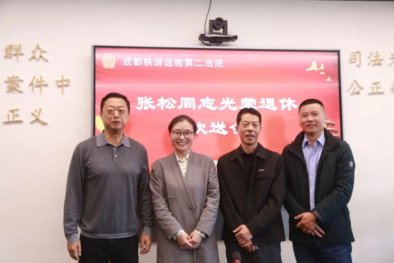 “感谢张松同志的付出,他将最宝贵的年华和最辛勤的汗水投入到成铁二院事业发展中。希望张松同志始终牢记成铁二院情怀,常回家看看,积极参与退休党支部建设工作,为法院工作高质量发展建言献策。”