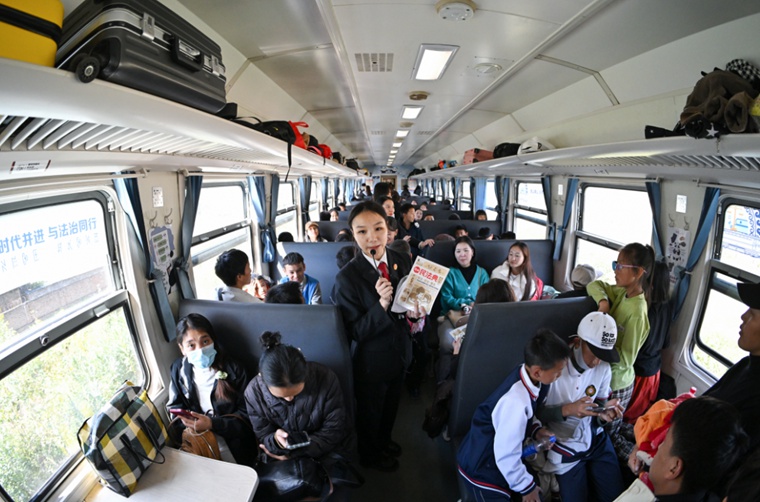车厢内,丰富的普法元素与现场互动,让乘客们在享受舒适旅途的同时,也轻松学到实用的法律知识,原本枯燥的法律条文变得生动有趣,易于接受。随着慢火车的继续行驶,沿途的风景与车厢内的普法氛围交相辉映,构成一幅美丽的画卷。