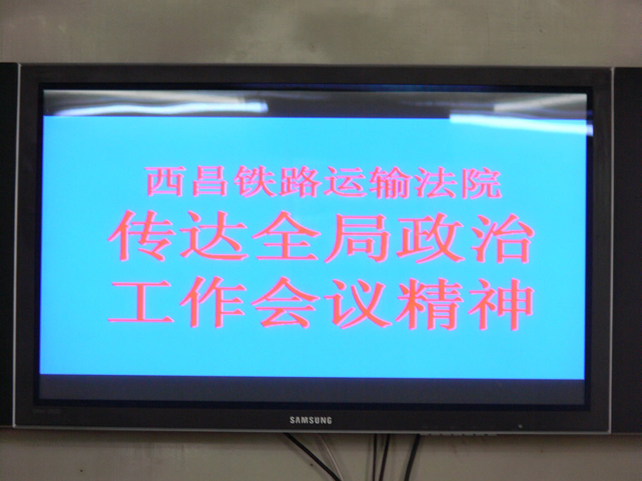 会上,组织观看了《力量》、《旗帜》专题片,党组成员刘成德传达了参加全局政治工作会议的基本情况,院党组书记、院长花桂荣对路局党委何元书记在全局政治工作会议上的报告何作了详细解读。指出,这次全局政治工作会议是我局在加快西南铁路现代化建设进入关键时期召开的一次十分重要的会议,会议总结经验,分析形势,研究和部署当前和今后一个时期全局政治工作任务,为全面加强和改进全局政治工作指明了方向、明确了目标。我院一定要按照路局党委的要求,紧密围绕路局中心工作,切实贯彻和落实好本次会议精神,将铁路法院的各项工作推上一个新台阶。