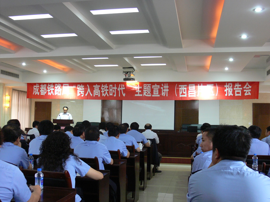 “跨入高铁时代”主题宣传报告会,报告会内容分宏伟蓝图美好未来、运输安全责任重大、职业成长前景广阔、发展成果共建共享四大部分。