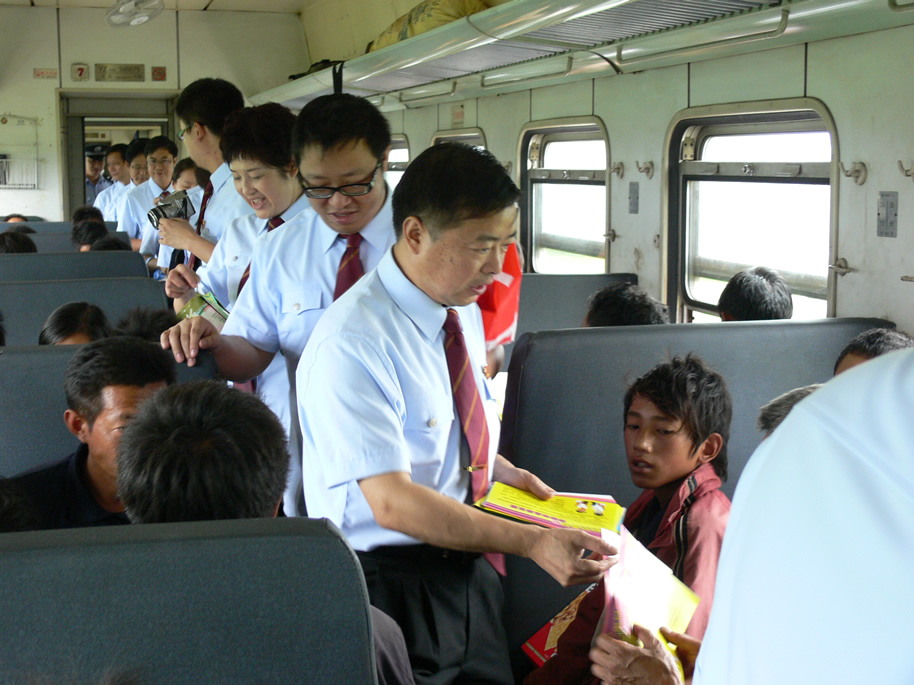 5634次列车旅客多为彝族同胞,人员成分复杂,禁毒形势严峻。我院干警主动向乘客们分发禁毒宣传手册,向他们宣传毒品给社会公众带来的巨大危害,介绍与毒品有关的知识,以及毒品犯罪的相关法律法规,呼吁彝族同胞认清毒品危害,抵制毒品诱惑,提高防范意识。