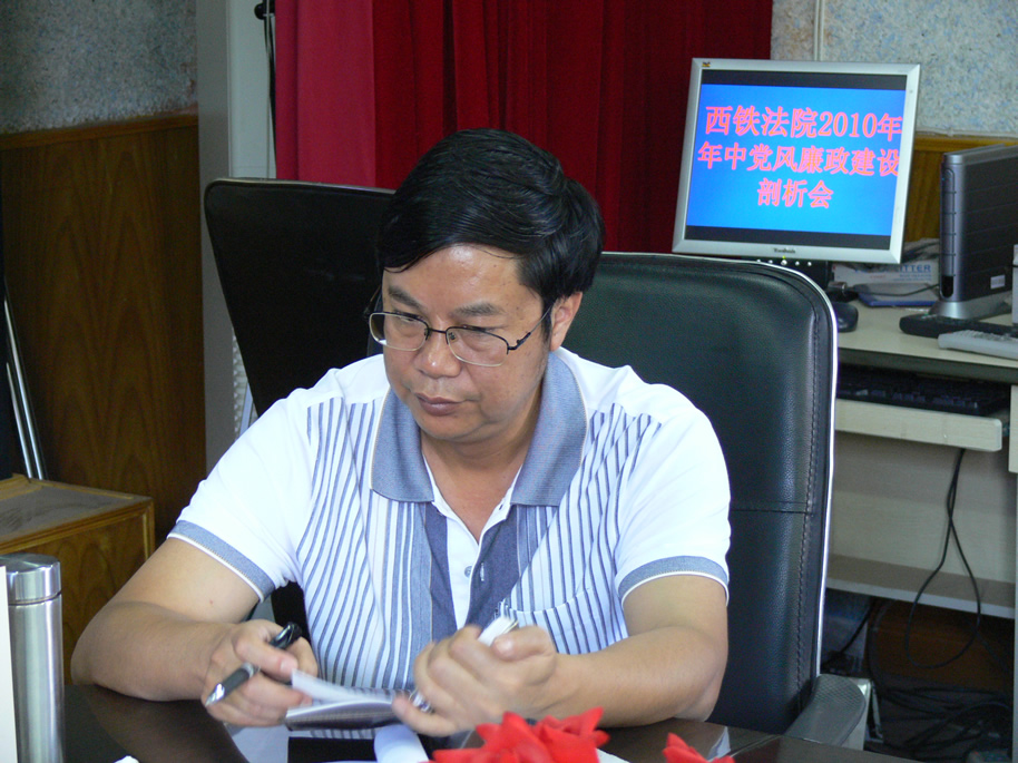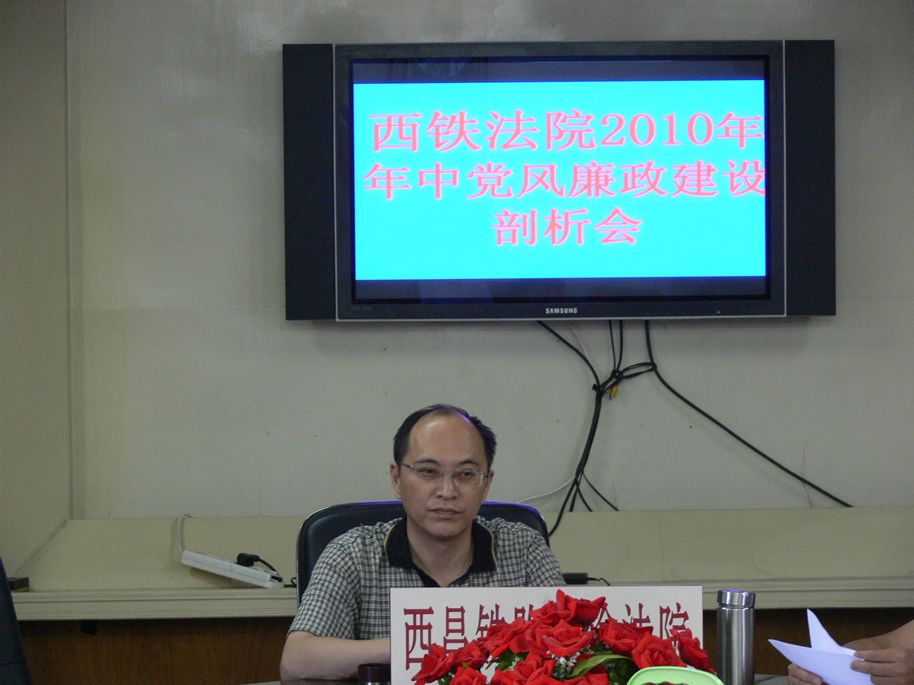 2010年7月22日,西昌铁路运输法院召开本年度年中“党风廉政建设定期剖析会”,院党组成员、中心组成员参加了会议,兼职纪检监察员、六管人员列席。成铁中院政治部主任尹朝良、协理员黄学军到会指导。会议由院党组书记、院长花桂荣主持。