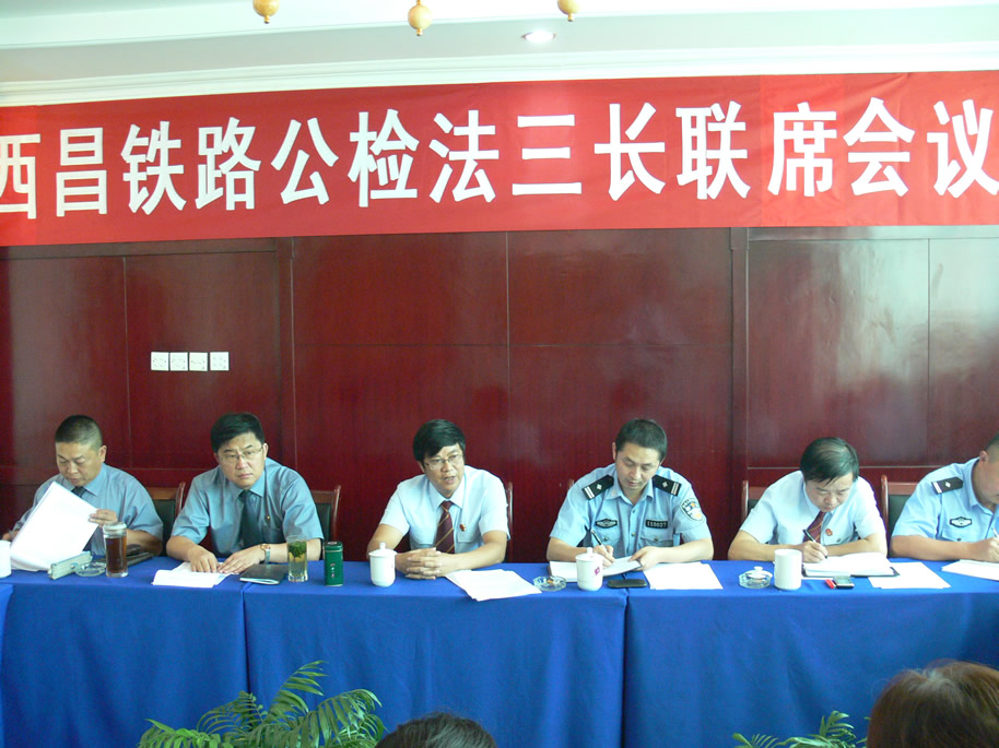 为了深入贯彻成铁两级法院刑事审判工作会议精神,进一步推进“三项重点工作”, 2010年8月9日,西昌铁路运输法院主持召开了西昌铁路公检法2010年度第一次“三长”联席会。西铁院院长花桂荣、副院长刘成德、审委会专职委员王为建和刑庭、民庭负责人,西铁检察院检察长韩志成、主管公诉的副检察长高晓和公诉、侦检科负责人,西铁路公安处处长敬松、主管刑侦的副处长谷成科和刑侦、法制科的负责人等20多人参加了会议。