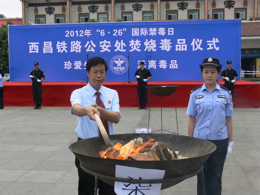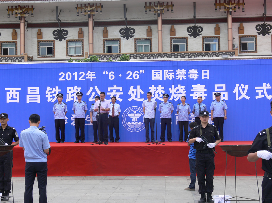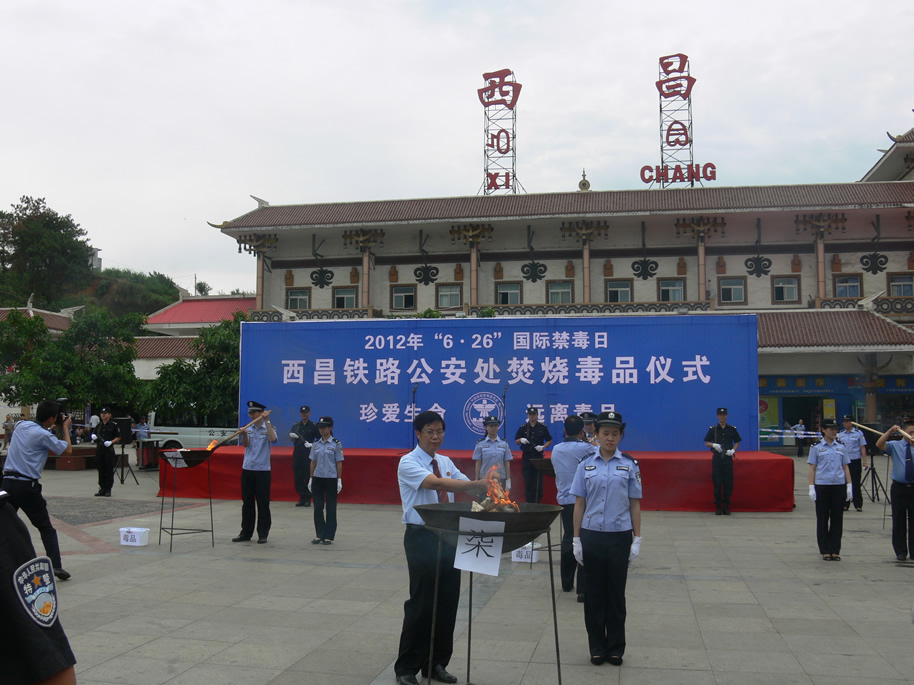 6月25日,西昌铁路公安处在西昌火车站广场举行了“6.26”国际禁毒日焚烧毒品活动。凉山州政法委、西昌铁路公检法、铁路地区各站段单位主要领导及千余名铁路职工和群众参与。西铁法院院长花桂荣代表铁路法院出席活动,并在禁毒横幅上签名。当天一共焚烧了22公斤各类毒品。活动现场还发放了两千余份禁毒宣传资料。