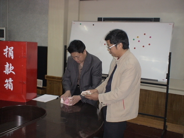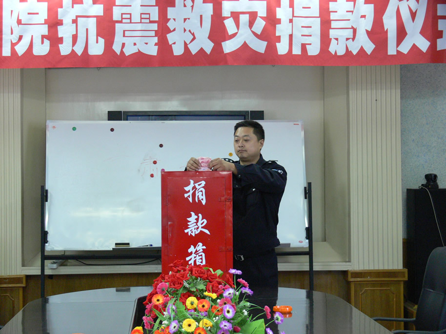 党组书记、院长周明昌第一个带头捐款,之后,全院法官、法警及工作人员也纷纷慷慨解囊。在外地执行案件的执行人员得知捐款消息后,打电话委托同事代替自己捐款,已经退居二线的老同志从外地乘坐火车赶到法院向灾区人民献出了微薄之力,退休多年且长期在家养病的退休老同志得知向灾区捐款的消息后,也赶到法院向受灾的家乡人民奉献出爱心。