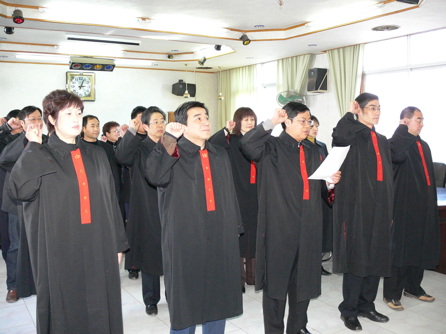 2月1日下午3时整,西铁法院全体干警身着制服,佩带徽章,面对鲜艳的国旗,举行了隆重的廉洁司法宣誓活动。