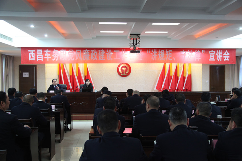 2018年1月25日,西昌铁路运输法院副院长张剑鸣一行三人受西昌车务段的邀请,参加西昌车务段党风廉政建设工作会暨“讲规矩,守法律”宣讲会,并由刑庭庭长宾伟为所有参会人员上了一堂崇尚法治,敬畏法律的课。