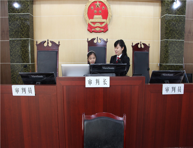 在宾庭长的带领下,学生们先后参观了诉讼服务中心、执行指挥中心、审判法庭、羁押室、党员活动室等。每到一个场所,好奇心和求知欲都让同学们赞叹不已。在庄严的审判庭内,小学生们触摸和感受审判设施。庄严的国徽、威严的审判台,让学生们顿感庄重和肃穆。宾庭长为学生们讲解了法徽、法槌、法袍的含义。他们纷纷走上审判台,试穿法袍,试敲法槌,在审判法庭当了一回“小法官”,切身感受司法的公正和法律的威严。学生们表示这是他们第一次“零距离”参观法院,不仅学到了很多法律知识,还实现了“小法官”的梦想,回去一定好好学习,争取有一天真正的敲起法锤。
