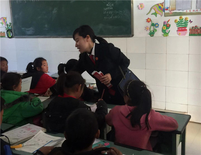活动:稍微整顿过后,综合审判庭庭长宾伟给孩子们上了一堂生动的法制课。宾伟庭长在讲台上和孩子们聊天讲解他们从未听过的法律知识,孩子们都听得聚精会神,互动交流过程中,我院干警还向小朋友们送去了精心准备的学习用具作为小礼品,鼓励他们好好学习,走出大山。