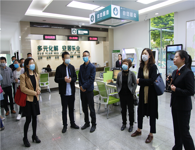 成铁法院调研组一行参观了诉讼服务中心、审判庭、法院文化走廊、法院历史荣誉馆等场所,感受了雅安中院以“山水茶韵,清和雅正”为主题打造出的特色法院文化。