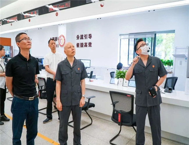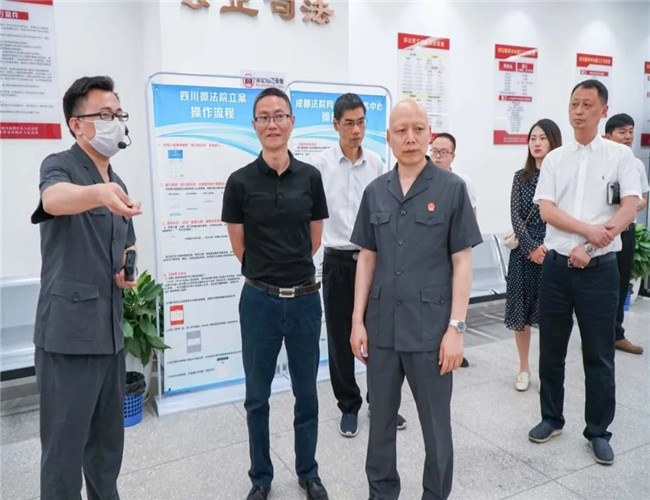 27日,考察组一行在天府新区法院(四川自贸区法院)党组书记、院长罗登亮,党组成员、副院长王佳陪同下观摩了O2O全网融合理事中心、导诉大厅、多元解纷共治中心、执行事务中心。在交流座谈中,考察组学习了天府新区法院如何围绕审判中心工作开展案件质效管理、党的建设、队伍建设、文化建设工作等先进经验。