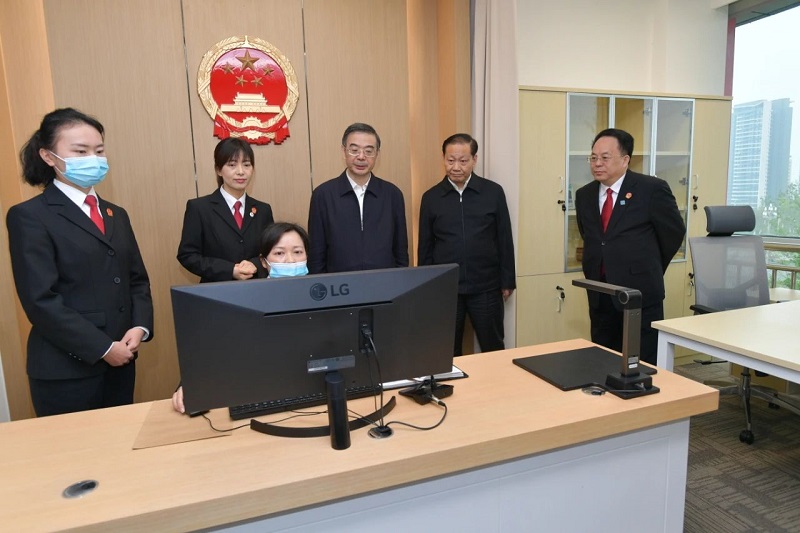 成都中院建立办案服务保障中心,设立专门小组处理辅助性事务,有效为法官办案减负。周强考察后予以充分肯定,要求坚持系统观念,认真总结经验,充分利用集约化、信息化等手段,不断提升审判工作质效。在成都市郫都区法院互联网法庭,法庭演示了引入新一代信息技术的智能庭审系统、区块链存证技术等,周强认真倾听,仔细询问互联网审判新情况新问题,要求进一步探索创新,健全完善在线诉讼规则,努力创造更高水平的数字正义。广汉市法院优化审判资源配置,实行案件“速裁、简案、繁案”三级分流。周强调研后指出,要不断完善诉讼机制,推动案件繁简分流、轻重分离、快慢分道,让正义提速,为群众解忧。