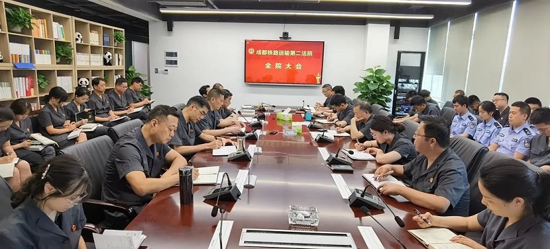 会上,苏青院长指出,2021是对成铁二院意义非凡的一年。上半年在全院干警的共同努力和密切配合下,我们成立了大熊猫国家公园生态法庭、全面入驻中央法务区,开启了成都铁路运输第二法院新的征程,取得了一定的工作成绩。