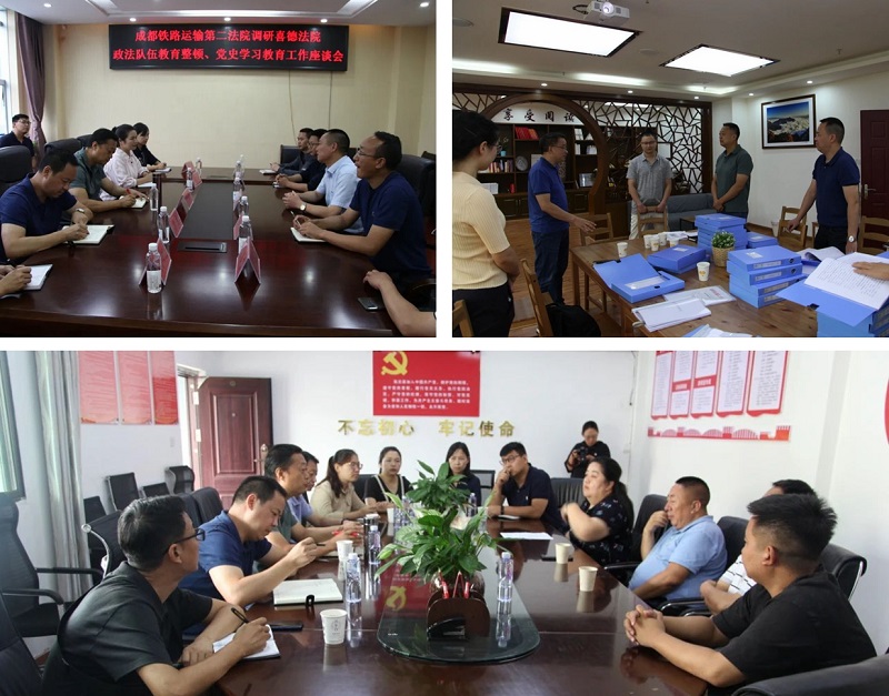 为认真贯彻落实党中央、省委、省法院和成铁中院关于政法队伍教育整顿的决策部署和整体安排,切实推动党史学习教育走深走实,高质量、高标准谋划推进学习教育各项工作,筑牢队伍教育整顿和党史学习教育的思想基础和工作基础,7月5日至8日,成都铁路运输第二法院党组成员、政治部主任于泳率院教整办相关责任同志组成考察组,先后赴喜德县法院、德昌县法院和荥经县法院考察学习政法队伍教育整顿和党史学习教育工作经验。