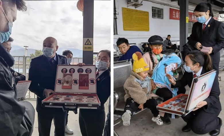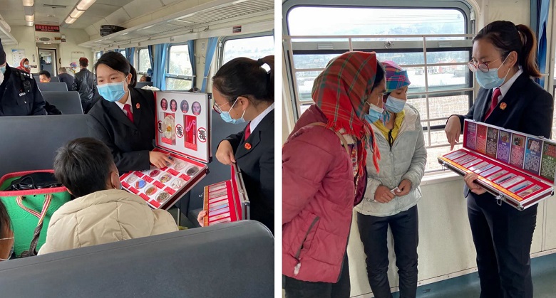 11月30日,第34个世界艾滋病日来临之际,成都铁路运输第二法院的法官们来了,他们在车上开展了一次别开生面的法治宣传活动。法官们向旅客展示了仿真毒品,用通俗易懂的语言讲解案例和法律法规,发放预防艾滋病和禁毒相关法治宣传册,旅客们对法治宣讲反响热烈,纷纷发问;法官们耐心解答,一一回应。老乡们表示感谢并表示要把今天学到的分享给亲朋好友。