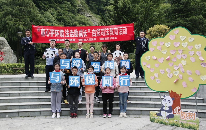 在六一儿童节和第51个世界环境日来临之际,5月26日,成铁二院联合宝兴法院、大熊猫国家公园宝兴县管护总站、蜂桶寨国家自然保护区管理部门邀请宝兴县蜂桶寨小学的孩子们走进大熊猫的发现地——四川蜂桶寨国家级自然保护区大水沟管护站,在国家公园里开启了一场奇妙自然司法之旅。